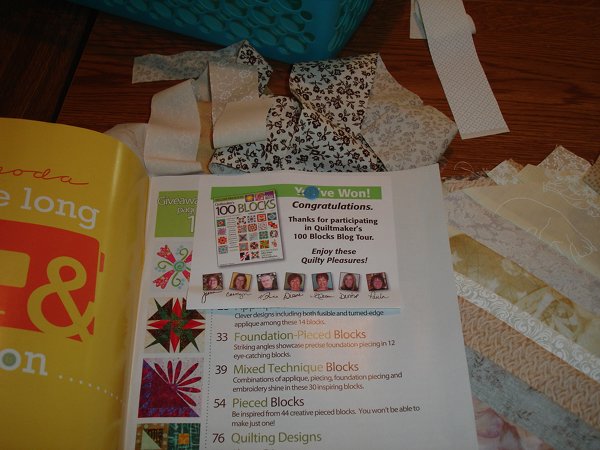 Organization is always VERY important to me when I start a project. I have lots of little baskets and leftover plastic containers from veggie/fruit purchases. When I dove into that great box of 2000 4" squares I found they were sorted into color families already! So I only took a few from each grouping. That way the colors would be spread evenly throughout the quilt.Look what I found in the box! So this tells me the box was my 2000 year purchase. I also have another one that I think I bought in 1998. I have not broken the seal on that one yet!